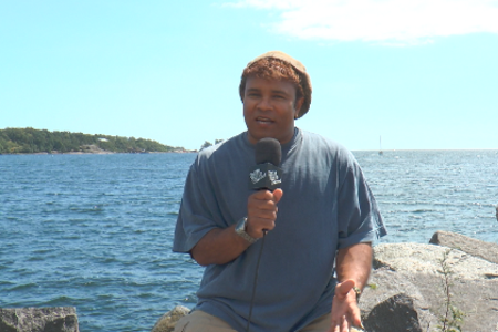 (Christopher on the set of "Indie Music Cafe" in Karlshamn, Sweden on the shore of the Baltic Sea)
